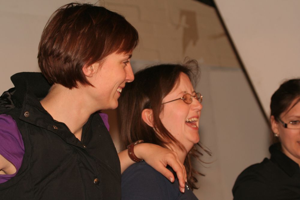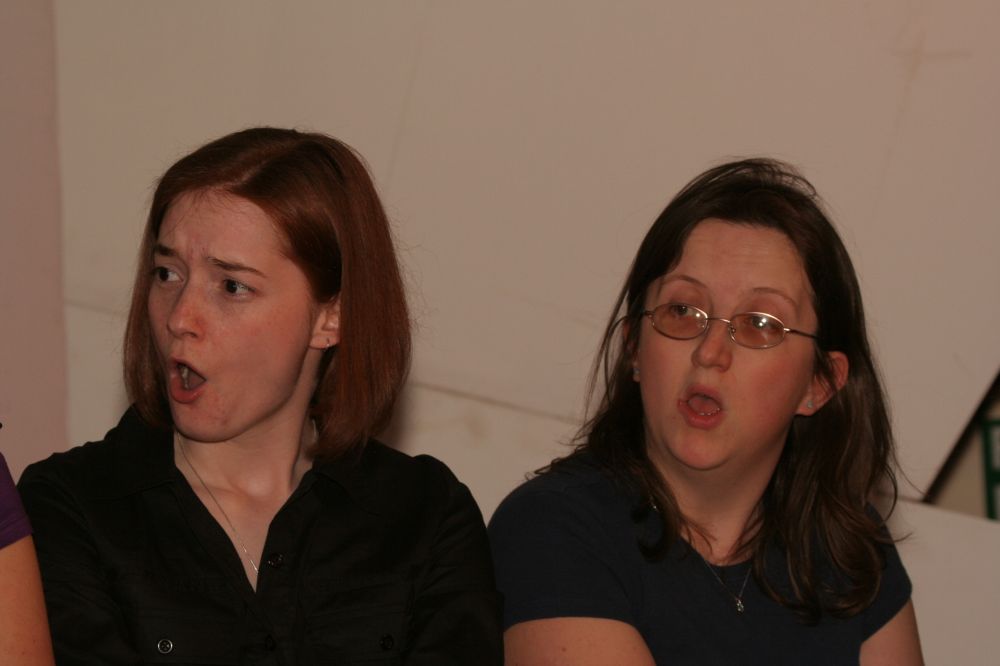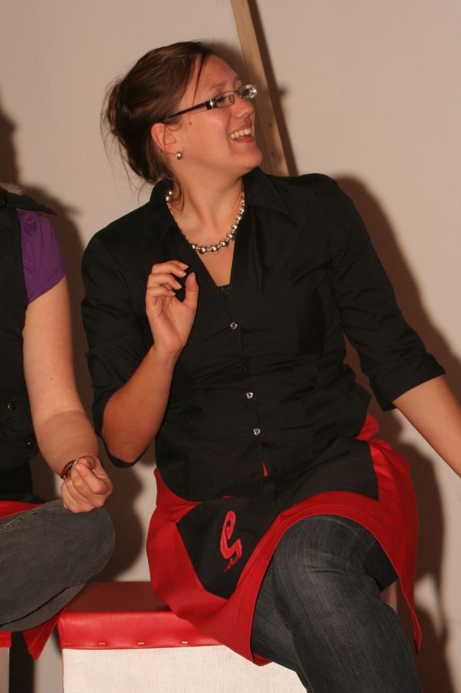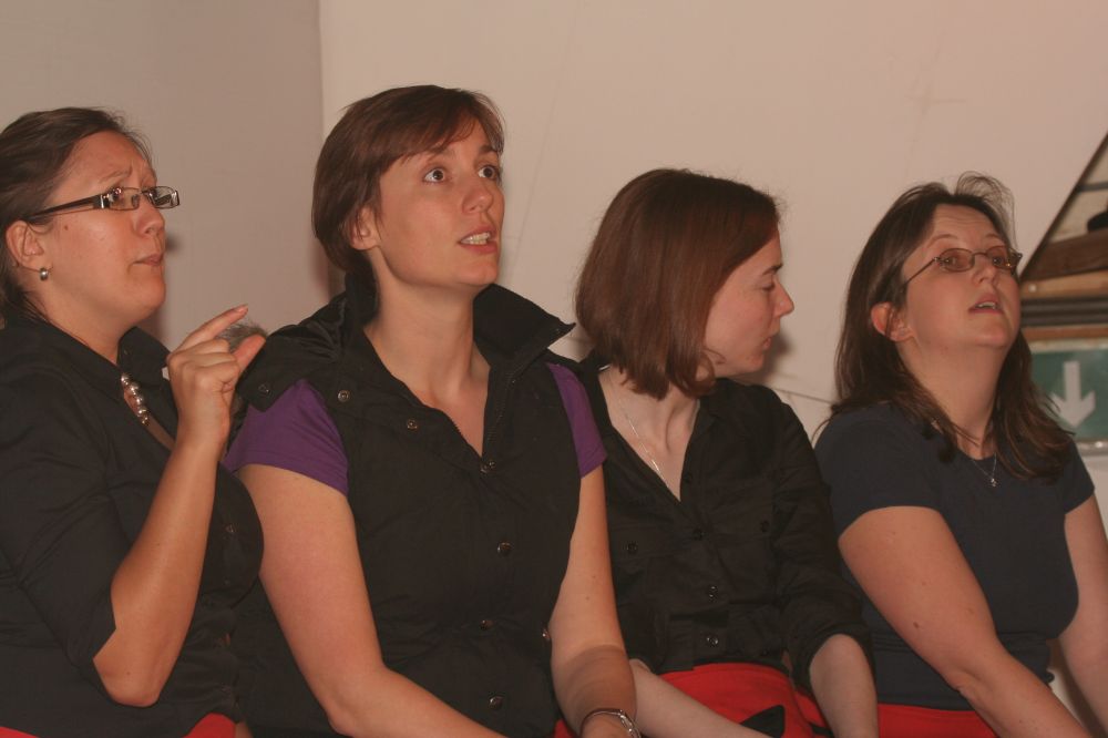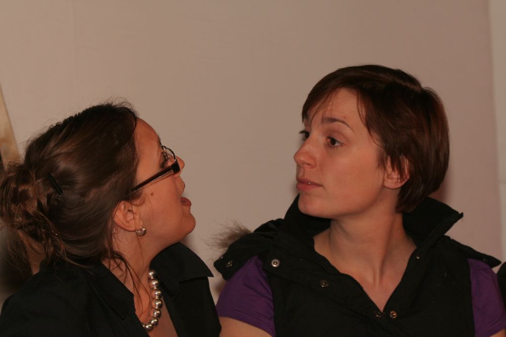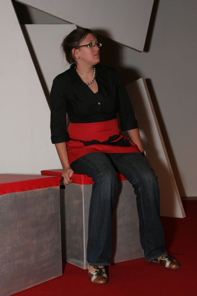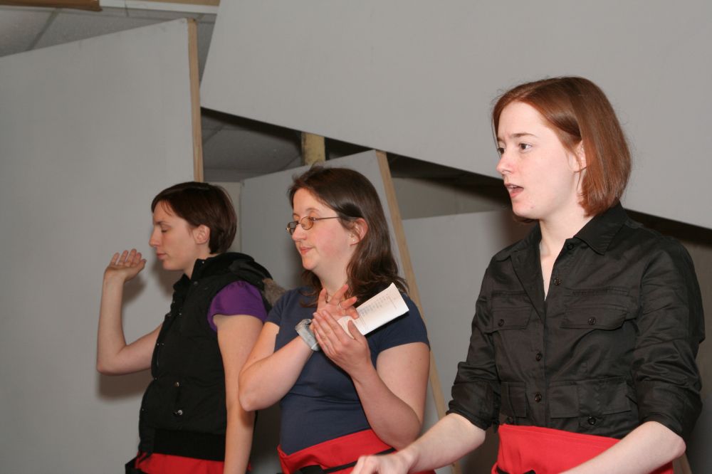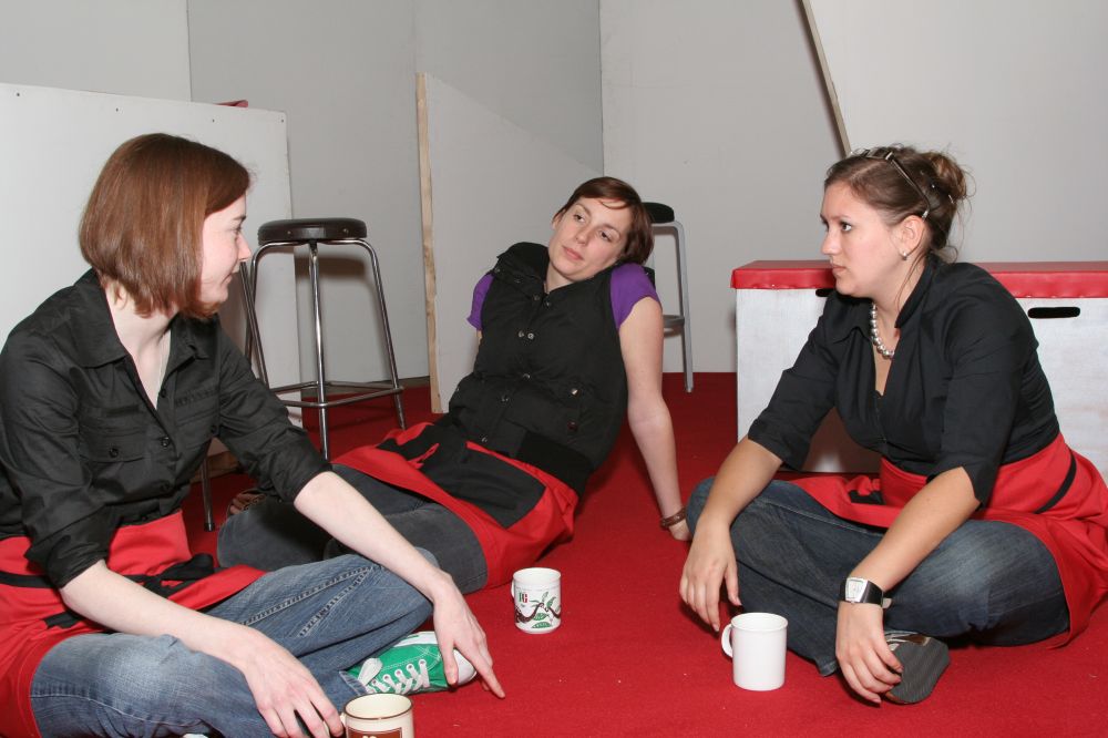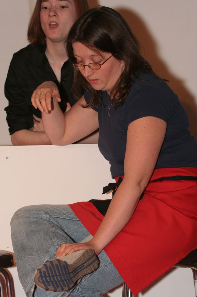 Switching in the flick of an eye and an effective lighting change, the waitresses change characters to parody their customers: a group of lads on the pull, fatuous businessmen, a group of silly shop assistants, a snobby pair of lovers, and many more.