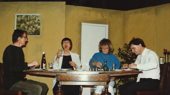 The action takes place in the dining room of a Victorian vicarage-type house. Sarah and Reg arrive to relieve Annie from her hum-drum existence looking after their bed-ridden mother. Annie is off for a dirty weekend in East Grinstead, that is until Sarah finds out that their brother-in-law Norman is Annie’s partner, and stops the whole thing. The result is an hilarious dinner party that turns to disaster.