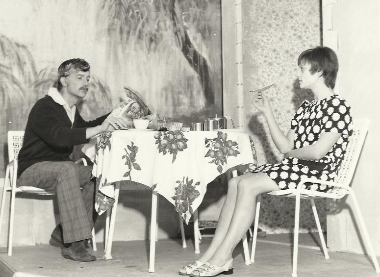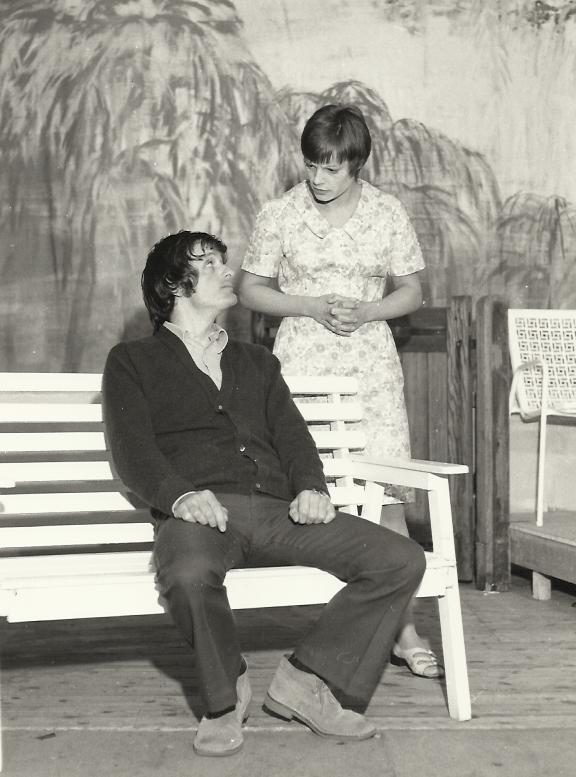 The change from Ginny’s poster-hung bed-sitter, to the patio of Philip’s highly desirable residence in Lower Pendon, Bucks, with its background of willows, won a much merited round of spontaneous applause, from the audience.