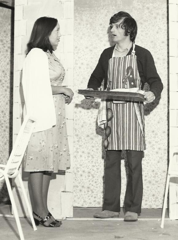 The older couple, Philip and Sheila, were very competently played by Eric and Elizabeth Saxton, playing husband and wife on stage for the first time. The teamwork produced by the four was excellent, and the rapid give and take of dialogue very well paced.