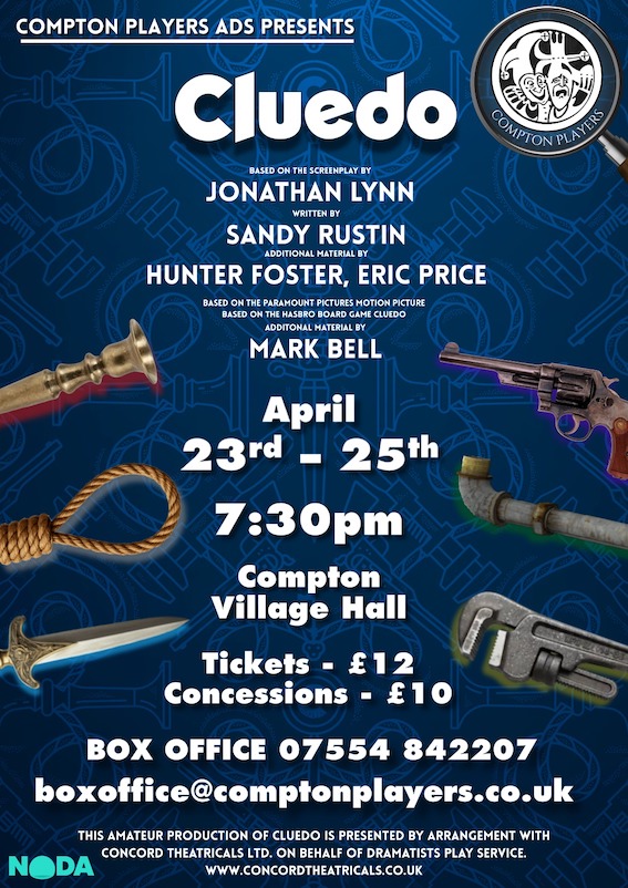 Adapted from the cult classic 1985 film and iconic board game, Cluedo is a madcap comedy that will keep you guessing until the final twist. Join us from April 23rd -25th to find out who did it, with what and where….that is providing no one dies laughing first.